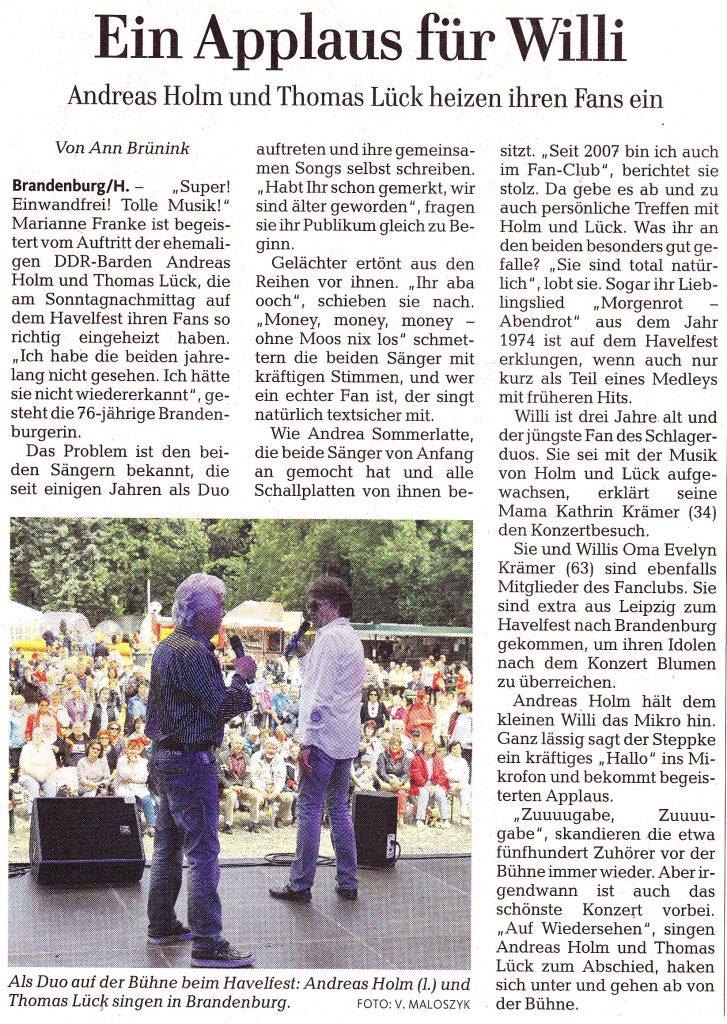Nebenstehend ein Artikel aus der Brandenburger Zeitung “Märkische Allgemeine” vom 24.06.2014. Vielen Dank an Frau Vorbeck (begeisterte Zuschauerin) fürs Zuschicken der Zeitung.